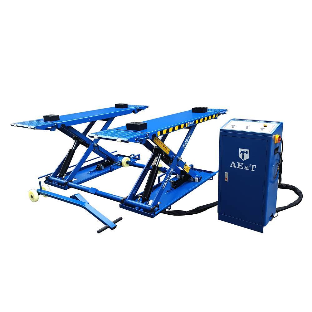 Ножничный электрогидравлический подъемник F6010 для использования в автомастерских и гаражах, либо вне помещений – под навесом. Позволяет поднимать автомашины весом до 3 000 кг и проводить текущее обслуживание, в том числе слесарные работы. Конструкция мобильна, перемещается при помощи специального приспособления, не требует предварительной подготовки основания для установки.