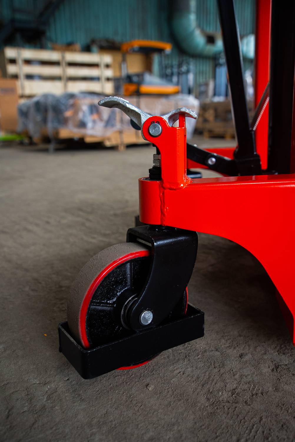 - Поворотные колеса оснащены механическим тормозом и закрыты стальной рамкой.