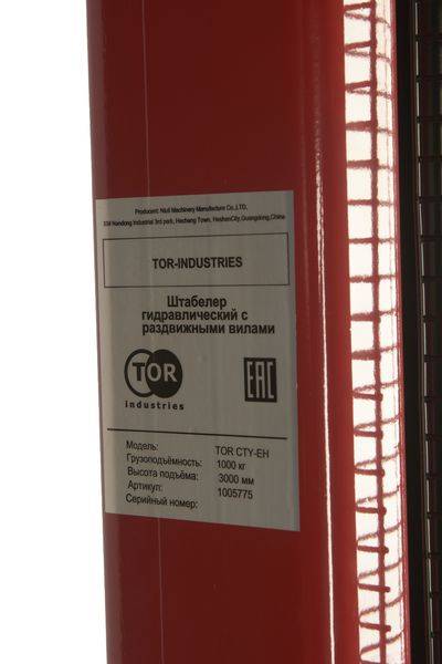 Штабелер гидравлический 1,0 т 3,0 м TOR CTY-EH с раздвижными вилами