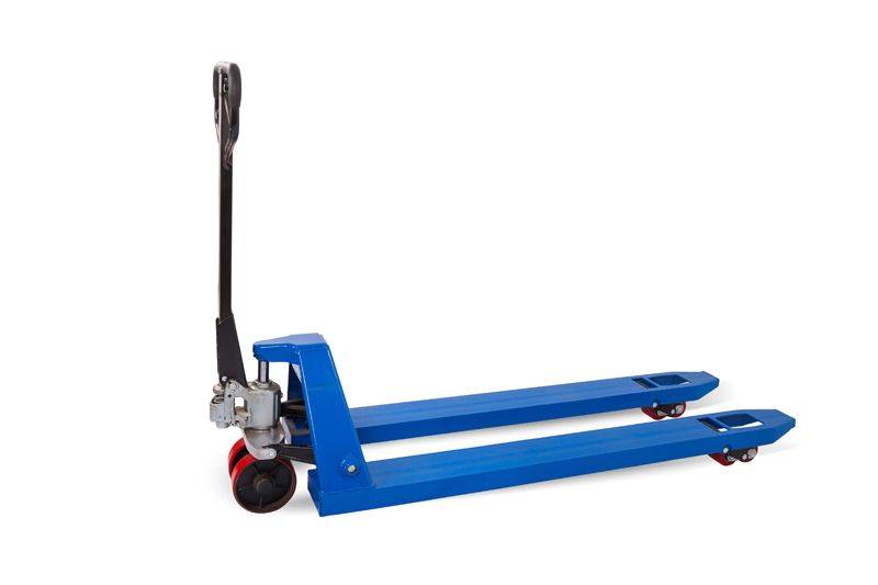 Тележка гидравлическая TOR RHP(BF) (полиуретановые колеса) поставляется с усиленными по все длине вилами. Такие вилы значительно увеличивают срок службы тележки. Подходит для постоянной работе при обработке тяжелых грузов на стандартных евро паллетах. Износостойкие полиуретановые колеса увеличивают срок эксплуатации тележки до замены колес.
