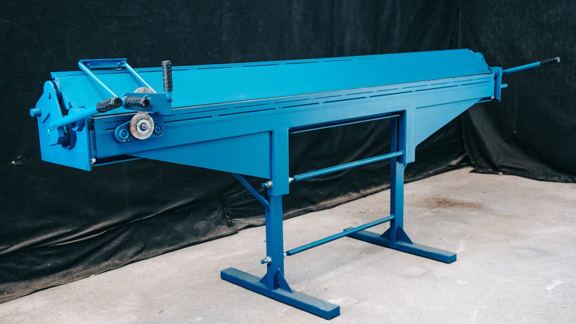 Листогиб серии RMA ПЛЮС представляет собой устройство, состоящее из стола с прочным основанием и прижимной балки, которая функционирует на основе рычажно-эксцентрикового механизма. Гибочная балка, установленная на оси, регулируется с помощью винтов, а также оборудована специальным устройством для регулировки угла изгиба в зависимости от толщины обрабатываемого материала. Этот листогиб ручного типа позволяет зафиксировать заготовку с помощью верхней прижимной планки, после чего изгиб осуществляется через рычаги подвижной планки.