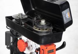 Сверлильный станок на стойке В-1313В/230 предназначен для сверления отверстий в металле, пластике, дереве и других материалах. В условиях мелкого и среднесерийного производства настольный сверлильный станок находит широкое применение за счет своей многофункциональности и высокой производительности. Данное оборудование может быть использовано практически в любых условиях — оно работает от обычной бытовой сети, имеет небольшие размеры и отличается невысокой потребляемой мощностью. Возможности станка расширены благодаря функциям поворота и наклона стола. Привод вариаторного типа позволяет подбирать необходимую скорость вращения шпинделя с цифровой индикацией оборотов.