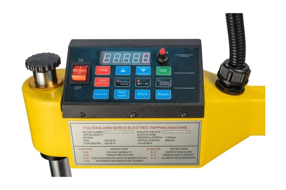 - Программирование скорости прямого и обратного вращения, крутящего момента, глубины и шага нарезаемой резьбы.