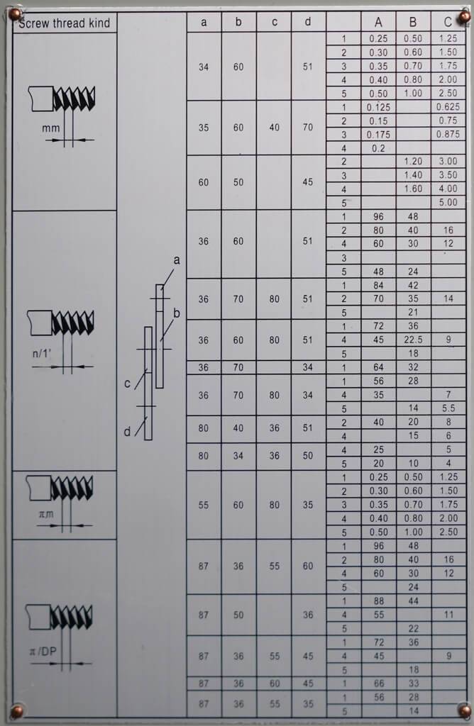 | Диапазон нарезаемых дюймовых резьб, ниток на дюйм | 12~96 / 9 видов |